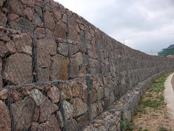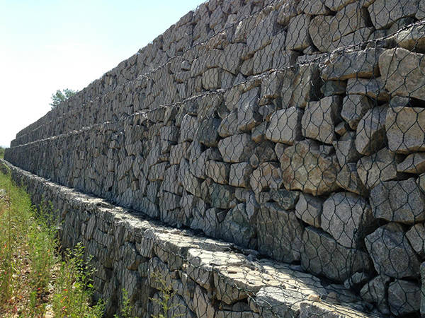 石籠網(wǎng)由高不腐蝕、高強度、具有延展性的低碳鋼絲或者包覆PVC的以上鋼絲使用機械編織而成,使用該網(wǎng)制作而成的箱型結(jié)構(gòu)就是石籠。根據(jù)ASTM和EN標準,所使用的低碳鋼絲直徑根據(jù)工程設(shè)計要求而不同。一般介于2.0-4.0mm之間,石籠網(wǎng)鋼絲的抗拉強度不少于38kg/m2,金屬鍍層重量一般高于245g/m2,石籠網(wǎng)片的邊緣線直徑一般要大于網(wǎng)線直徑。其雙線絞合部分的長度不得小于50mm.以保證絞合部分鋼絲的金屬鍍層和PVC鍍層不受破壞。